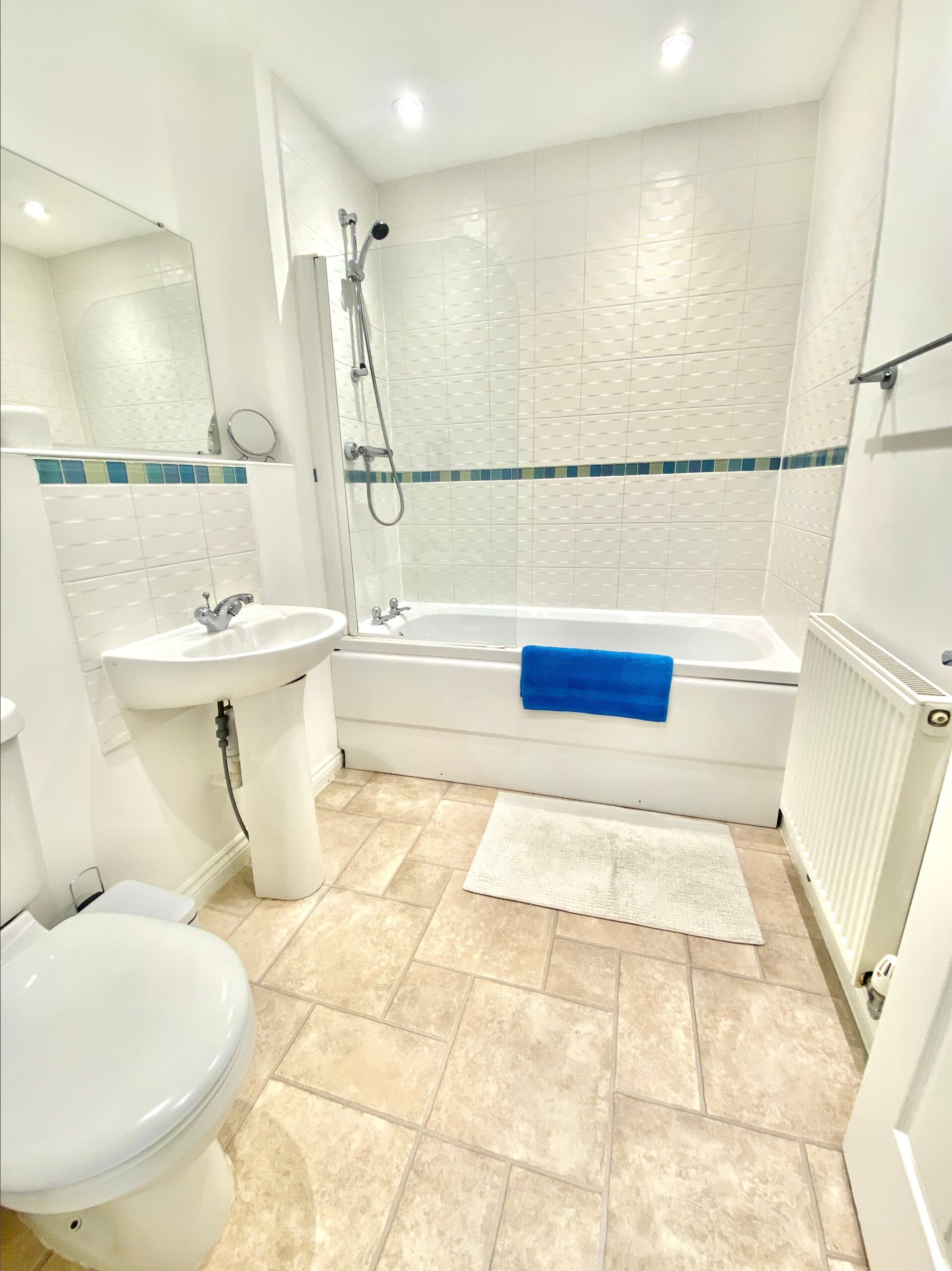 The family bathroom is another great space with full bath, shower over bath, fluffy towels and toiletries provided. Iron, ironing board, clothes airer and hairdryer are all provided. The house is cleaned and new linen/towels before your stay.